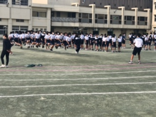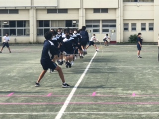 運動会を明日に控えて、今日は最後の朝練習でした。「いーちぃ、にーいぃ、さーん!」と大縄を跳びながら威勢のよい大きな声が校庭に響きます。