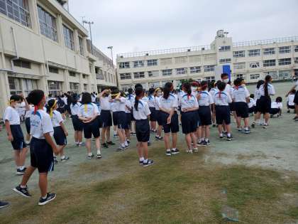 入場門前。次の競技に出る選手が集まっています。緊張しているなぁ〜