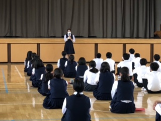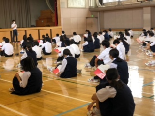 修学旅行に向けて(3年生) 公開日 2022/05/27 更新日 2022/05/27 できごと 29日から始まる修学旅行の事前学年集会が行われました。学年主任の先生からは、最上級生として精一杯頑張った運動会の取組を、この修学旅行生かしてほしいというお話がありました。生徒実行委員長は、今回の修学旅行のスローガン「志操堅固」「一致団結」「温故知新」を胸に、よい修学旅行にしよう!と3年生の生徒たちに呼びかけました。2泊3日、健康、安全、笑顔で過ごしてください!