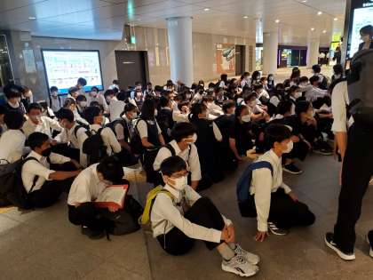 東京駅より。三年生の修学旅行の出発式前です。