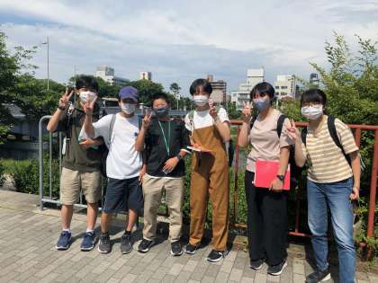 下鴨神社周辺で。みんなまとまって班行動をしています。