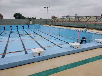 学校プールの清掃をしています。体育や開放で皆さんが使います。夏の準備が始まりました。