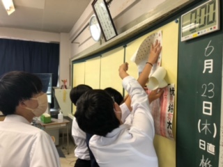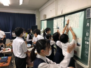 修学旅行のまとめ(3年生) 公開日 2022/06/23 更新日 2022/06/23 できごと それぞれが担当した修学旅行の記事を、1枚の模造紙に貼り付けていきます。どう切り分けたか思い出せず、四苦八苦している班も!?ワイワイガヤガヤみんなとても楽しそうです。