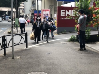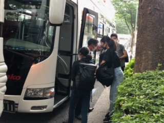 いよいよ河口湖移動教室当日になりました。バスは予定通り到着しています。みんな続々と集合しています。