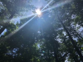 片付けも頑張っています!木々のすき間からさす木漏れ日が何とも美しい!