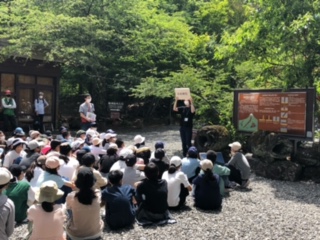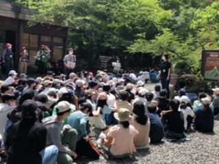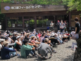 河口湖移動教室1日め22 公開日 2022/06/24 更新日 2022/06/24 できごと 河口湖フィールドセンターに到着しました。最初に説明を聞いて、クラフト作りとガイドウォーク(森探検)に分かれて行動します。