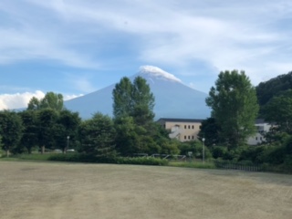林間学園に着きました。開園式を行なっています。部屋からは富士山が一望できます。