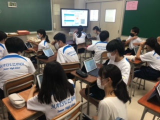 授業がんばっています!(1年英語) 公開日 2022/07/05 更新日 2022/07/05 できごと 1年生今日の英語の時間の目標は「I want to…の文の特徴や決まりを理解し、たずねたり答えたりすることができる」と「ALTに今年の夏休みにやりたいことについて紹介するために、夏休みにしたいことを整理して書いたりすることができる」です。生徒たちは、ペアワークやロイロノートを活用して積極的に授業に参加していました。