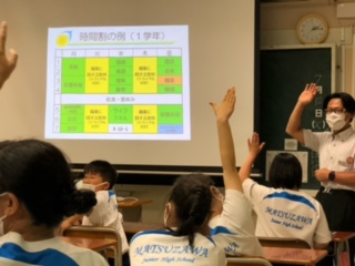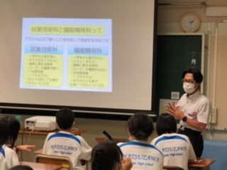 ?ときわ学級では、キャリア学習の一環として、数回にわたって就業技術科3校、職能開発科2校の先生方をお招きして、進学先での学校生活や「今やっておくべきこと」などについてお話をいただいています。今日はその最終回。東京都立南大沢学園の先生をお招きして、学校の特色や、授業のカリキュラム、選択したコースでどのような学習をするのか、具体的にお話いただきました。みんな積極的に取り組めました。