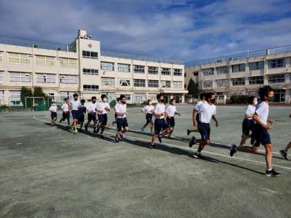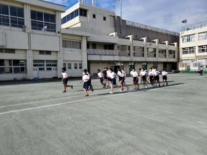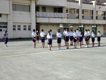 おはようございます。7時20分の開門を待って、準備を始めました。最初の集合とウォーミングアップ。やる気満々です。