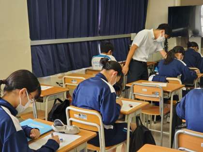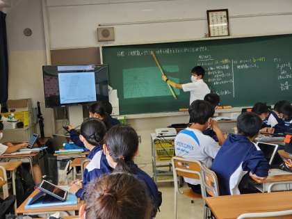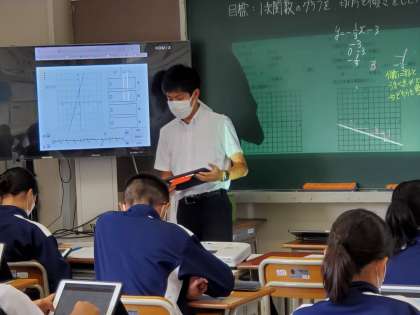 本日の授業風景です。今日は5校時の数学をのぞいてみました。一次関数について。iPadを使って直線を書いてみました。