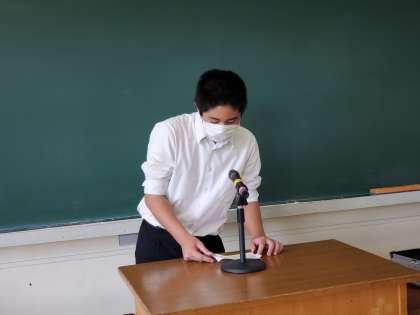 本日の生徒朝会。各委員会からの報告のあと、選挙管理委員会と松中祭実行委員会きらお話がありました。