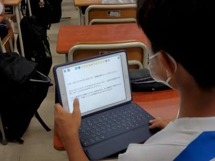 実験のふりかえり2 公開日 2022/09/14 更新日 2022/09/14 できごと 話し合いと結果の共有が終わり、いよいよ気体の正体を考えています。iPadに質問が送られています、みんな答えられるかな?