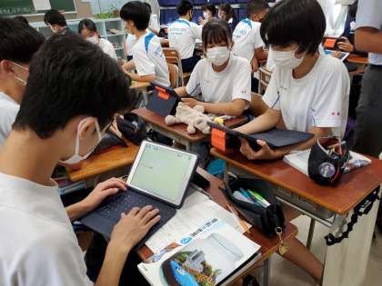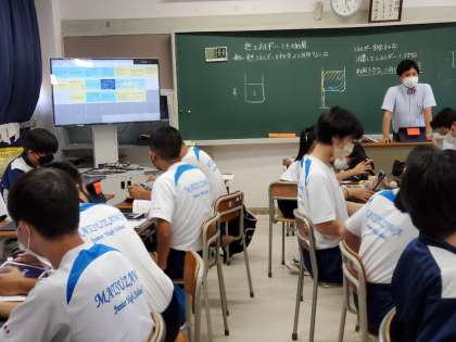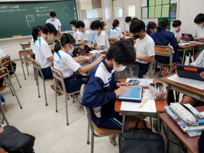 個人で考えたことを班毎に発表しています。終わりに自分で考えた内容を投稿して発表します。