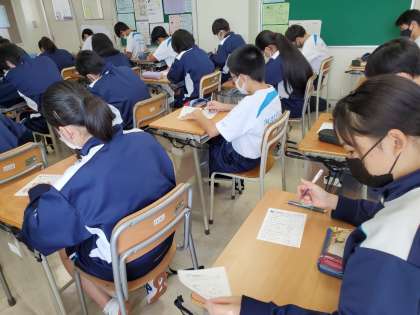 小説を読みすすめて 公開日 2022/09/16 更新日 2022/09/16 できごと 漢字テストの採点の後、小説を読む内容です。お盆にお墓参りをした時の家族のいろんな心情。どのように読み解くか。それぞれの登場人物はどのようにおもっているか。考えて発表しています。