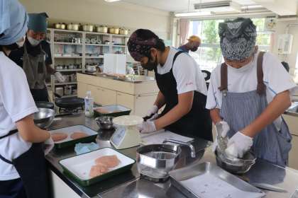ハンバーグには大量の玉ねぎを使います。切ったり炒めたりすると、目にしみてきます。