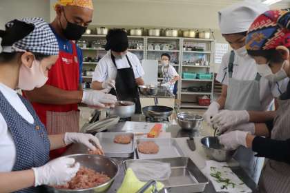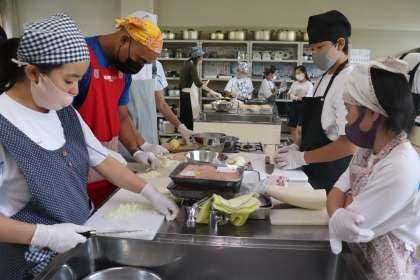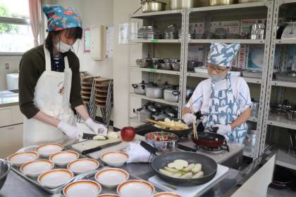 野菜スープは炒めたベーコンや人参、ジャガイモ、タマネギ、トマト缶で作りました。