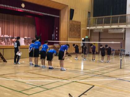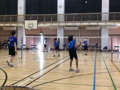 9/25バトミントン選手権大会 公開日 2022/09/25 更新日 2022/09/25 できごと 明日から中間考査ですが、バトミントンの団体戦が行われています。4校の総当たり戦です。アップをしていよいよ試合開始です!