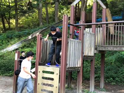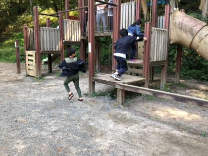 鬼ごっこをしたり、縄ロープジャングルジムに登ったり、みんな遊ぶのに必死です!