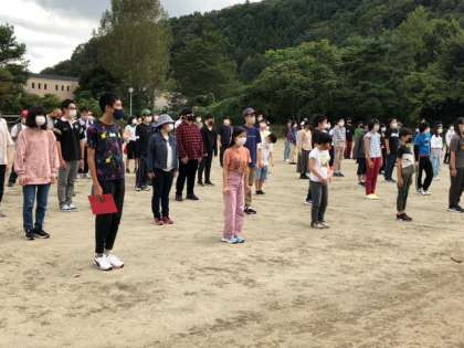 学園に到着しました。開園式を行なって部屋に入ります。残念ながら今日は富士山を見ることができません。