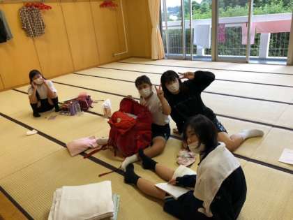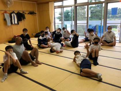 お風呂に入ってゆったりまったりしています。男子は一つの部屋に集合!しています。