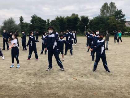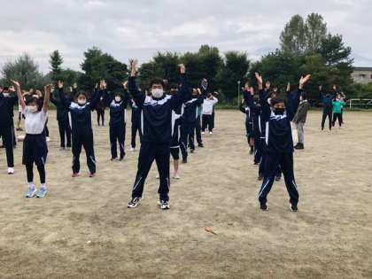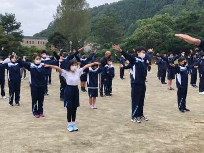 朝の朝礼、ラジオ体操で体をシャキッ!とさせます。