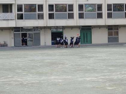 今日は3年のボールの貸し出し。みんなボールに群れています。