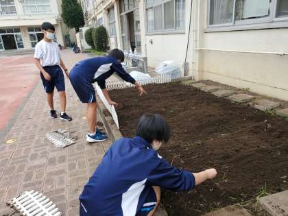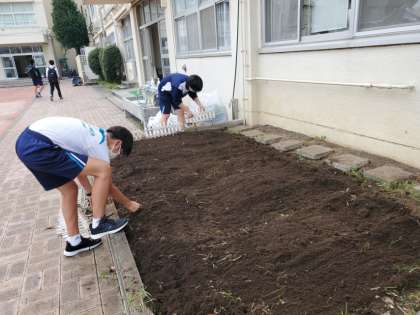 夏休み頑張って水やりをしたヒマワリ花壇のあとの整地をしました。次の花は何になるのかな?
