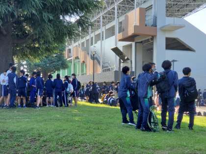 区陸上競技大会です。開場前の様子。何となくリラックスしています。