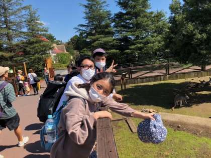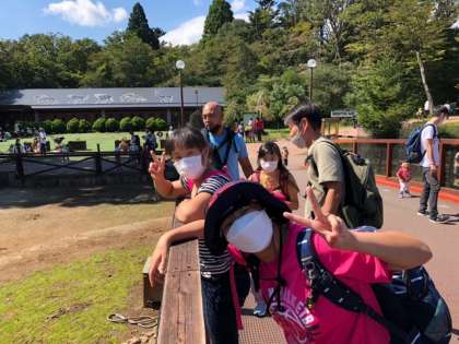 パーク内の見学に出発しました。天気がよくて歩いていても気持ちがいいです。