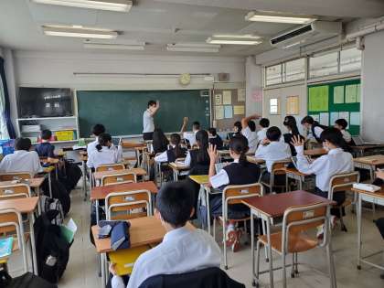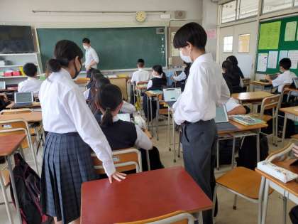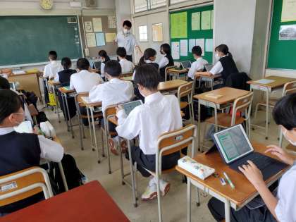 数学です。今日は比例式の学習しています。iPadを使用して配信されたものをみています。