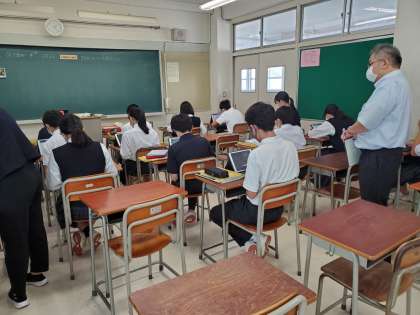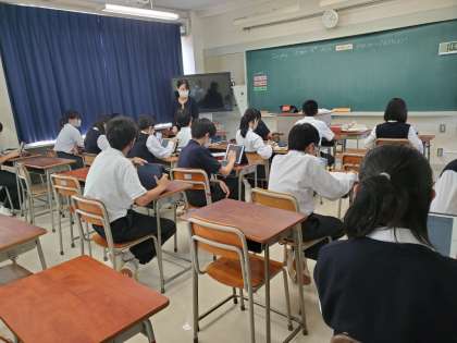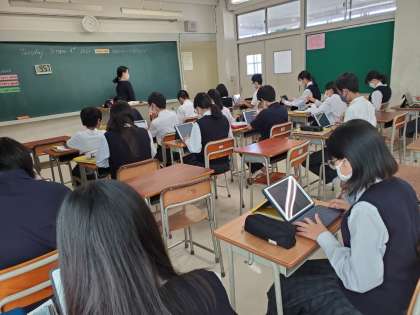 授業の最初にiPadのなかのQubenaを使って振り返り学習しています。