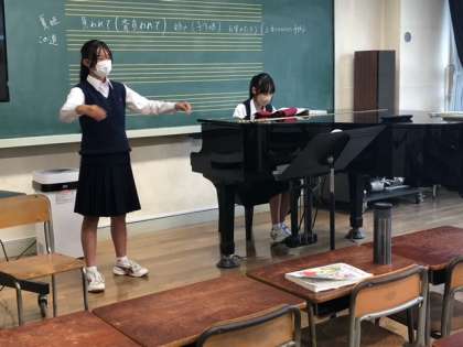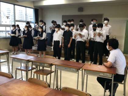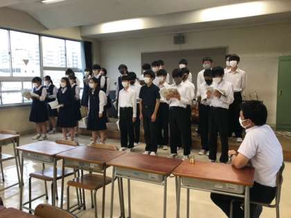 今日の音楽室割り当て練習、3Aの様子です。ソロパートが入る美しい曲です。