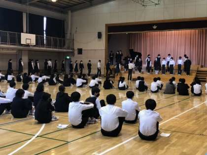 入場の仕方、並び方はバッチリOK!あとは思い切り大きな声を出して、みんなと楽しく歌うことです!