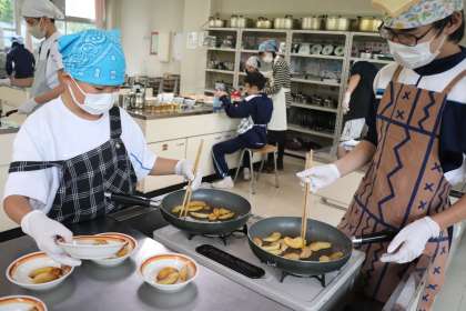 ときわ学級 調理の様子4 公開日 2022/10/07 更新日 2022/10/07 ときわ学級 野菜スープは、野菜を炒めてからトマトで煮ました。 コトコトゆっくり煮こんで、美味しいスープになりました。 りんごのバター焼きでは、りんごの皮むきが大変でしたが、前回より手早く作業を進めることができました。