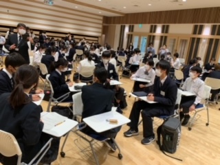 全体会では、講師の先生を招き、講演を聞いた後に学校の自慢について、話し合いを行いました。