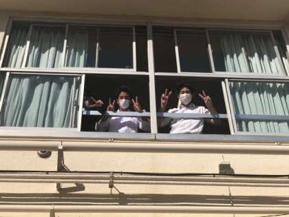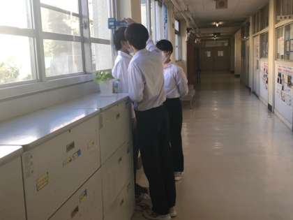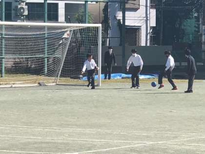 青空が美しい一日となりました。昼休み、生徒は思い思いに過ごしています。