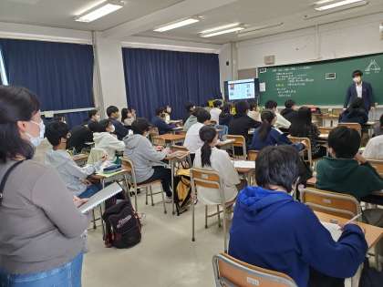 今日は土曜授業日です。保護者や小学生、地域の方々がいらっしゃっています。