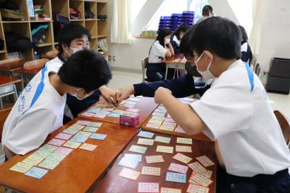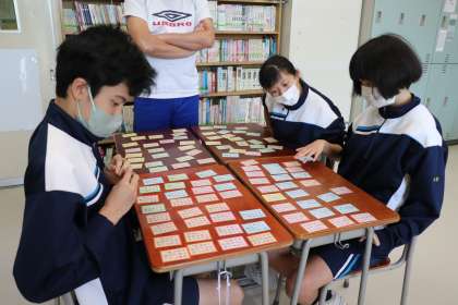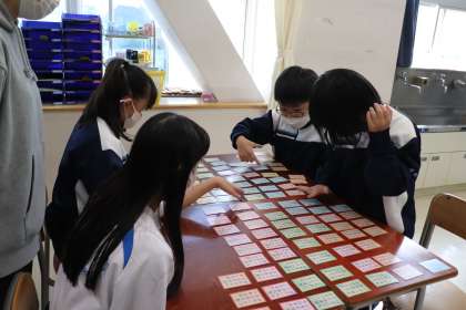ときわ学級 百人一首の様子 公開日 2022/11/11 更新日 2022/11/11 ときわ学級 今日の国語の授業では、百人一首を行いました。 どれどれ? ヒントちょうだい! これかな? あったー! やったー!とれた〜! と元気よく楽しみました。