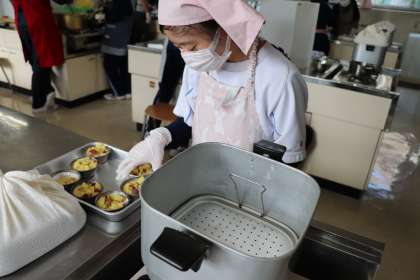 さつま芋の蒸しケーキには、茹でたさつま芋を使って作りました。