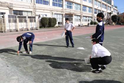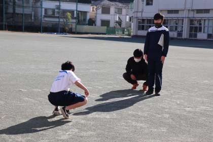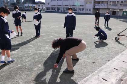影の長さを測定する際は、皆で協力しながら楽しく行うことができました。