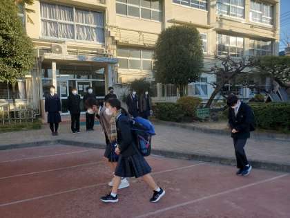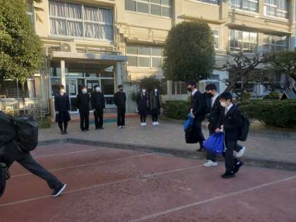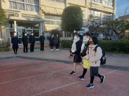 昨日から自治委員による朝のあいさつ運動が始まりました。生徒のみんなにあいさつの習慣を身に付けてもらいたいという気持ちから企画されました。今日は3年の自治委員が担当です。