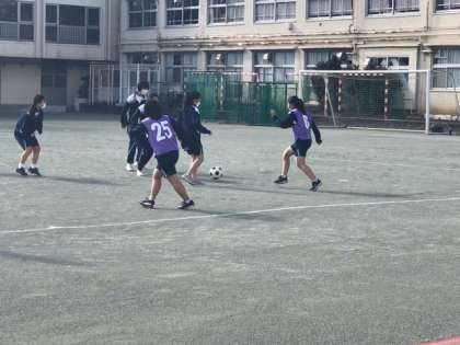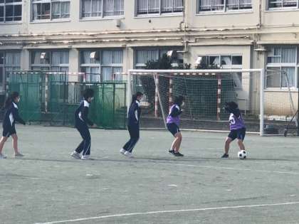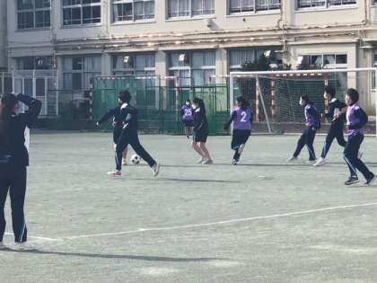 3年生が保健体育の授業でサッカーをやっています。「なでしこジャパン」目指してボールを追って走ります!