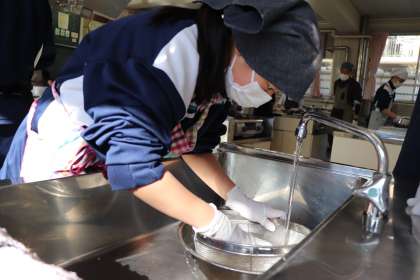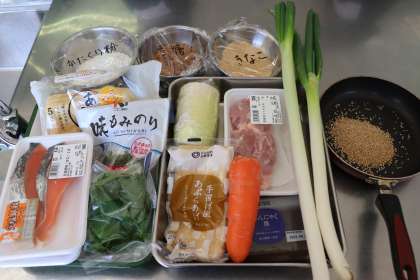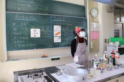 今日のメニューは、鮭ちらしとけんちん汁、黒糖くずもちでした。