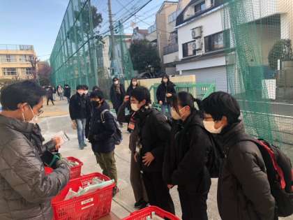 2年生校外学習の朝です。班でまとまって学校から出発します!「行ってきまーす!」