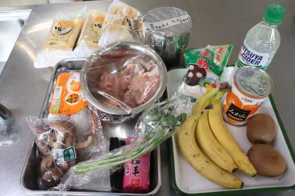 今日のメニューは、前回と同じいなり寿司、茶わん蒸し、フルーツ白玉でした。