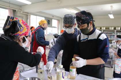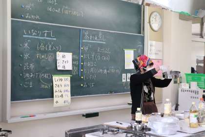 始めに、茶わん蒸しの卵をこす際の注意点について学習しました。