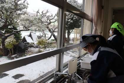 今日は雪が降る中作業をしました。