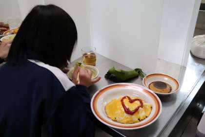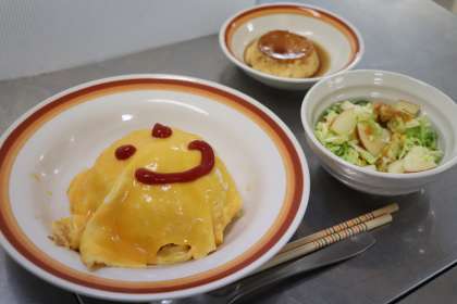 サラダも丁寧にキャベツをみじん切りにし、りんごが入ったさっぱりしたサラダです。