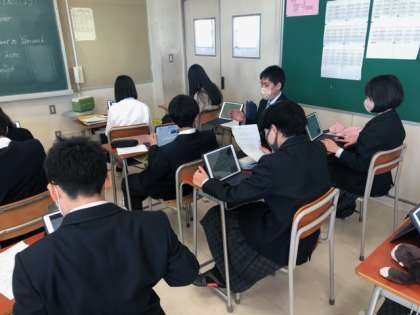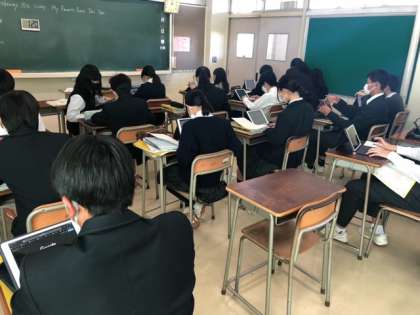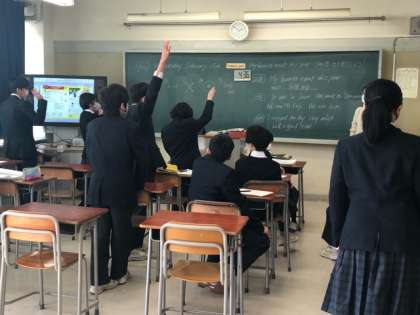 学び舎小学校の先生の前で 公開日 2023/02/15 更新日 2023/02/15 できごと 今日は赤松学舎の小中合同研修会です。学び舎小学校(松沢小、赤堤小)の先生方が松中の授業を参観されます。ちょっと嬉しいような、照れくさいような‥。(写真は1年生の英語の授業風景です。)